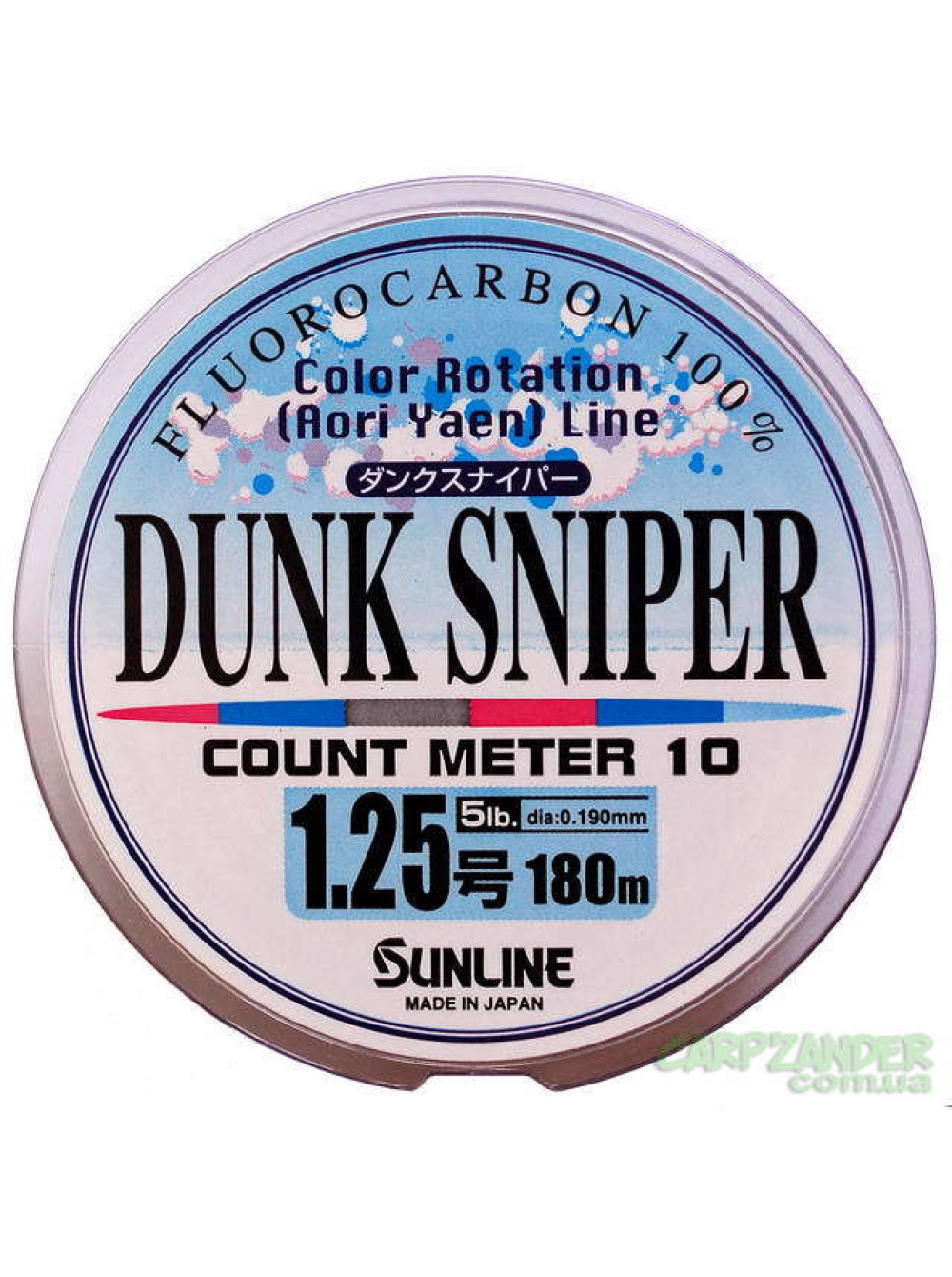 Високоякісна флюорокарбонова волосінь, особливістю якої є спеціальна система маркування. Кожні 10м забарвлені у різний колір. Завдяки такій системі можна дуже точно контролювати розташування приманки та відстань до неї. Особлива м'якість Dunk Sniper дозволяє використовувати його як основну волосінь. Цей флюорокарбон особливо застосовується при лові на спінінг у сильно зарослих і закоряжених водоймищах, висока зносостійкість флюорокарбону дозволить зберегти ваші приманки, система маркування допоможе більш точно контролювати проводку. Крім того, Dunk Sniper відмінно підходить для лову на фідер, особливо у водоймах з великою кількістю абразиву, наприклад черепашника.
