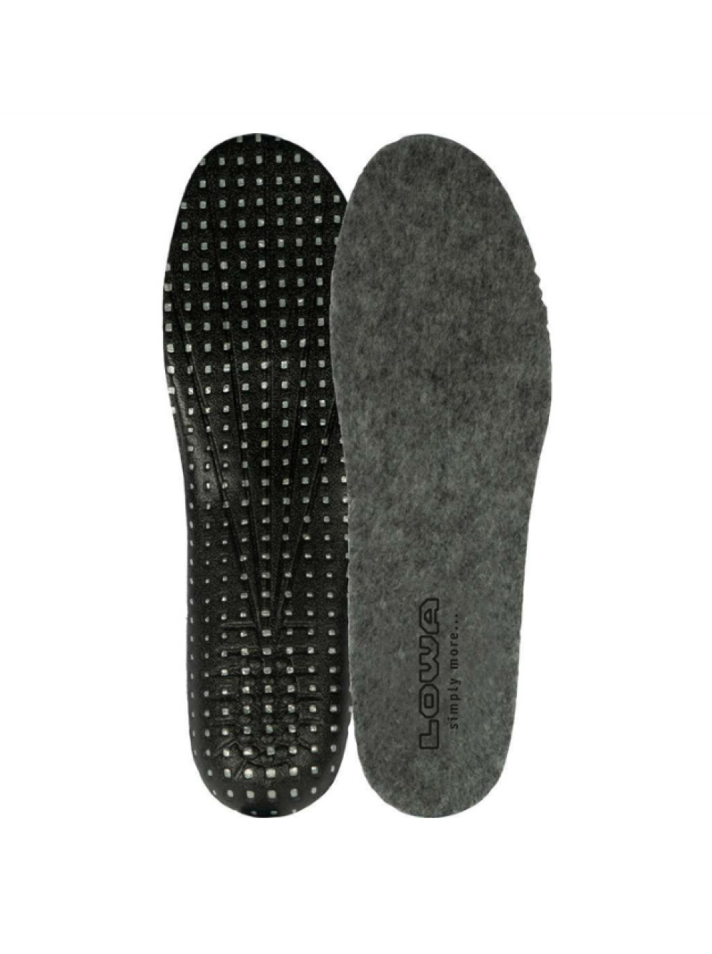 LOWA Footbed Cold Weather – зимові устілки для взуття. На 50% виготовлені з поліетилену, який забезпечує комфорт і захищає стопу від холоду. Нетканий матеріал верху зберігає тепло, що виділяється стопою, а додатковий шар із перфорованого поліетилену сприяє поліпшеній циркуляції повітря. Алюмінієва фольга ізолює холод знизу і зберігає тепло у взутті.