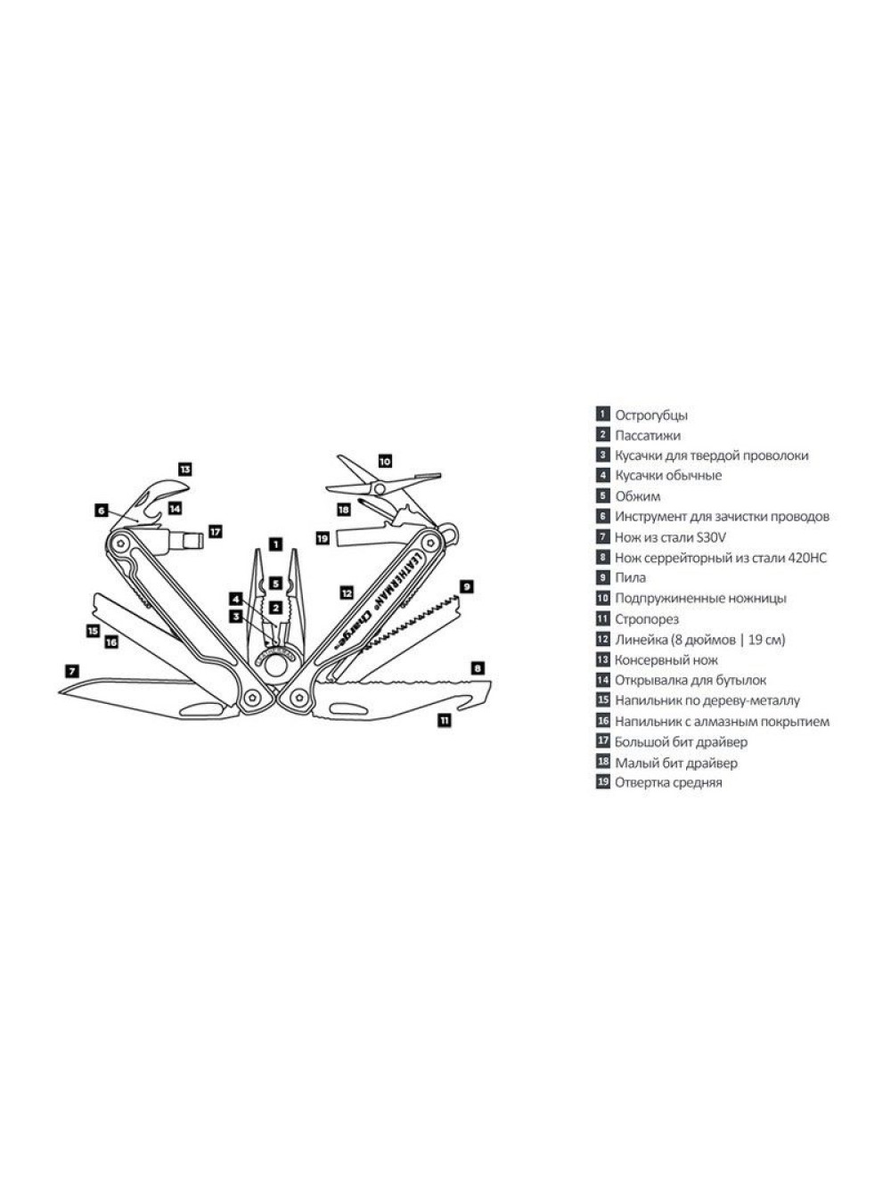Коли Leatherman створив Charge TTI, цей мультитул об'єднав всі найбільш затребувані функції в один функціональний інструмент. Чудові, виготовлені з титану накладки рукояті і клинок зі сталі СРМ S30V®, впевнено піднімають цей багатофункціональний інструмент на зовсім інший рівень. Хто говорить, що мультитул не може бути стильним?
