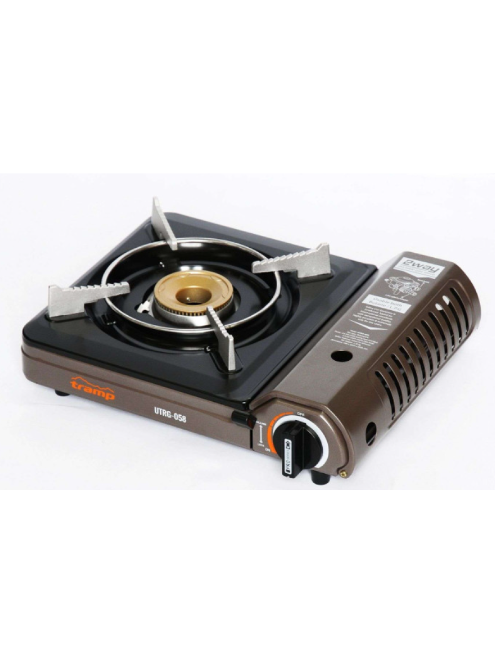 Tramp UTRG-058 — універсальна портативна газова туристична плита, яка працює і від газового картриджа і від «великого» побутового пропанового балона (LPG).