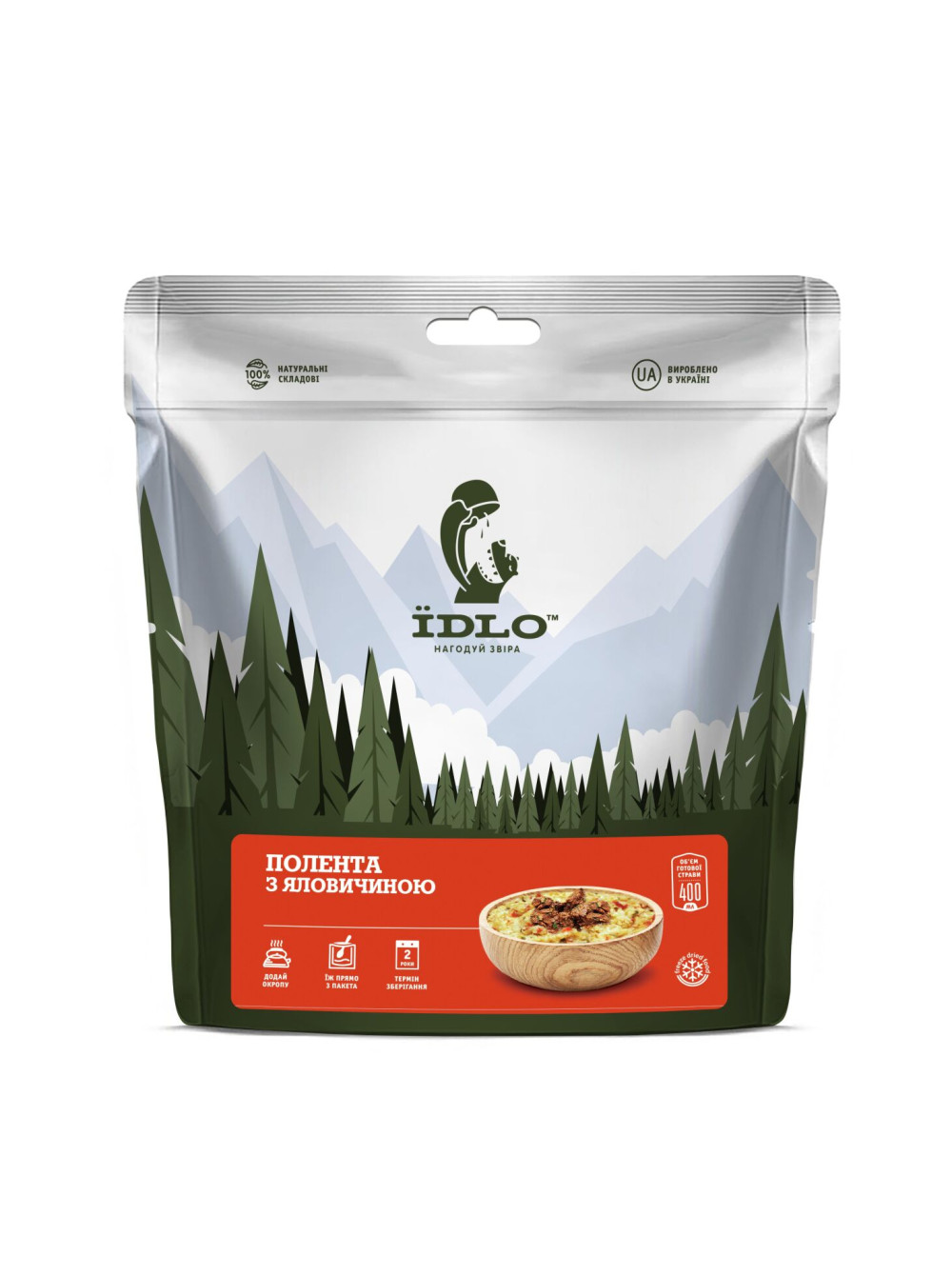 Метод приготування: струсити та відкрити пакет, дістати поглинач, залити страву окропом 400 мл (до рівня 8 на лінійці справа), ретельно перемішати, закрити замок на пакеті та зачекати протягом 10 хвилин, насолоджуватися стравою. Не панікувати, якщо “пощастило” спробувати поглинач на смак, це абсолютно безпечно.