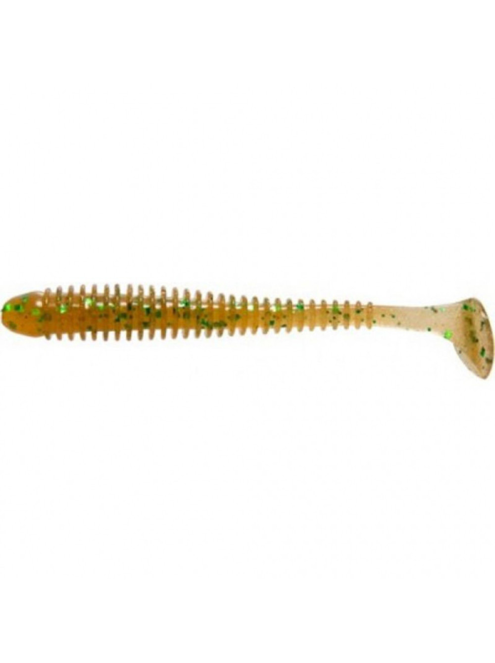 Пятка виброхвоста очень подвижная и включается в игру при самой медленной проводке. Ребристость на теле приманки создает дополнительные возмущения в водной среде, привлекающие хищника с большого расстояния.