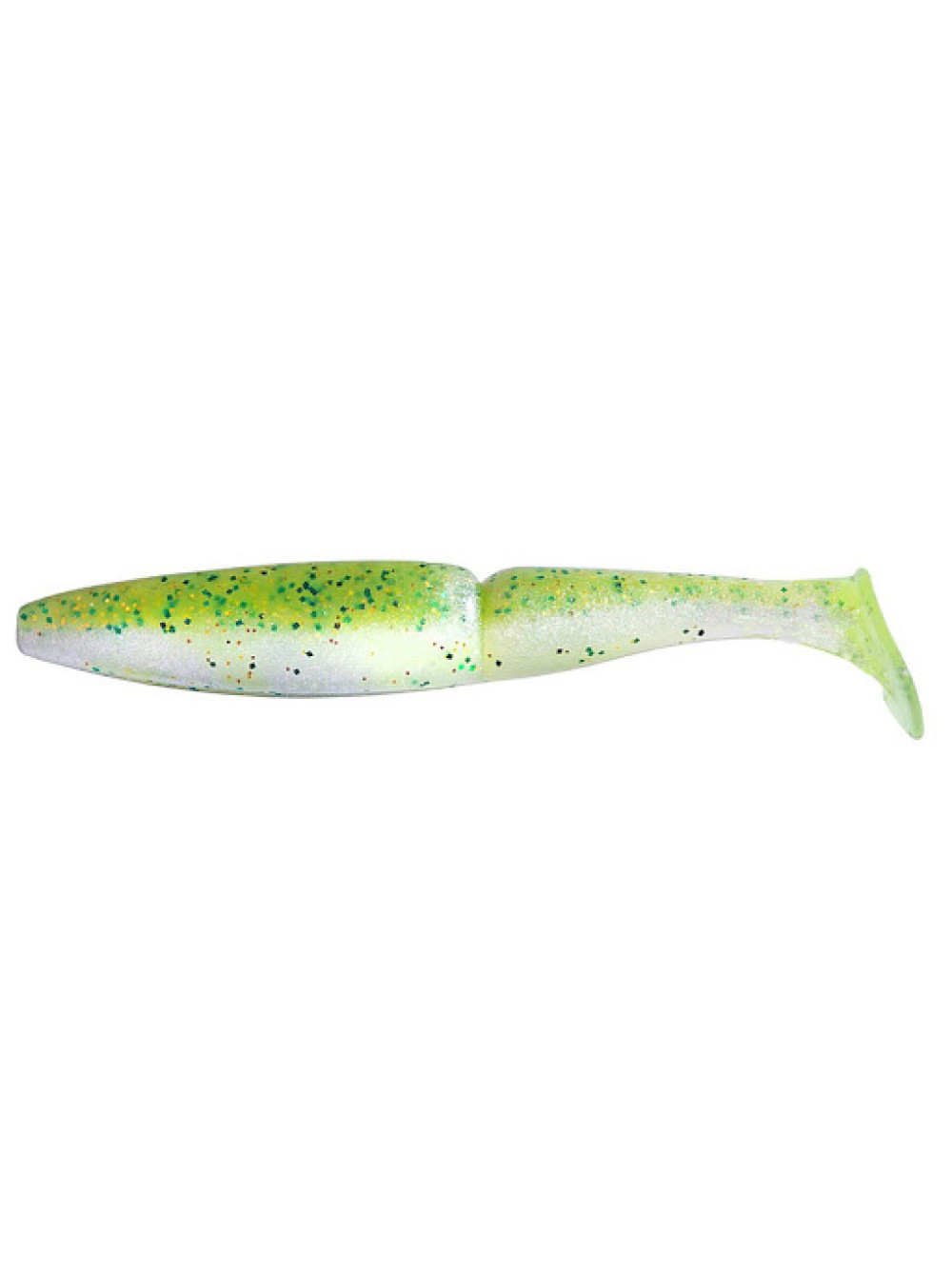 One`Up Shad – приманка виброхвост имеющая сложную форму. Имеет перешеек, который соединяет основное тело с хвостом. Также имеются продольные борозды с верху и снизу для того чтобы можно было спрятать жало офсетного крючка. По свойствам приманка очень мягкая, но с тоже время довольно вязкая, пружинистая. Содержит соль и пропитан аттрактантом с «морскими» нотками. Приманка может использоваться на различных оснастках, так же и на обычной джиг-головке